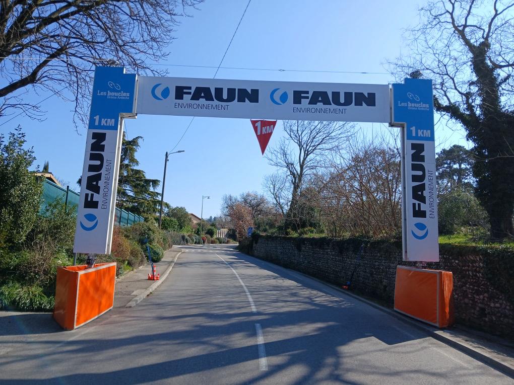 • les Boucles DrĂŽme ArdĂšche : une 25e Ă©dition qui a eu lieu sur un week-end, les 1er et 2 mars 2025, avec deux courses principales : la Faun ArdĂšche Classic (samedi) et la Faun DrĂŽme Classic (dimanche, oĂč nous avons assurĂ© l’installation des lignes d’arrivĂ©e (barriĂšrage, adhĂ©sifs de ligne…), des zones de ravitaillements et de collecte et les derniers kms. De bonne augure pour les Championnats d’Europe prĂ©vus en octobre.